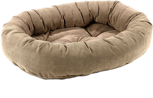 Bowsers Microvelvet Donut Dog Bed is an award-winning design. The oval outer ring provides a feeling of “security” and comfort for your pet, while the removable “tufted” cushion can be used as a crate or travel mat. Bolster and bottom cushion contain 100% “high-memory” polyester fiber.