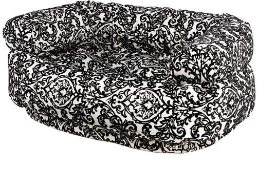 The Double Donut’s upper bolster is finished off with “piping” to create an elegant, “sofa” look, at the fraction of the cost of high-end dog furniture. The overstuffed “tufted” bottom cushion combined with a removable convoluted foam bottom insert, provide unsurpassed comfort and support. Of course, both bolsters and cushions are zippered for easy machine washing and drying.