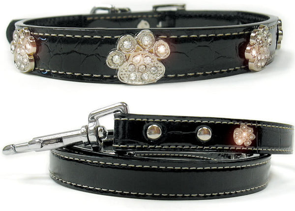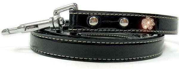 Diva Dog’s Bella Dog Collar is one of the most beautiful designer dog collars on the market today. The genuine patent crocodile print leather is stylish and chic. The crystal encrusted paw motif is a glorious touch. Your pooch will look like a movie star in Diva Dog’s Bella Dog Collar.