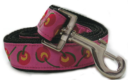 The Cherries dog collar features a pattern of adorable cherries on a fuchsia background. It’s springtime all year with the Cherries collar.
