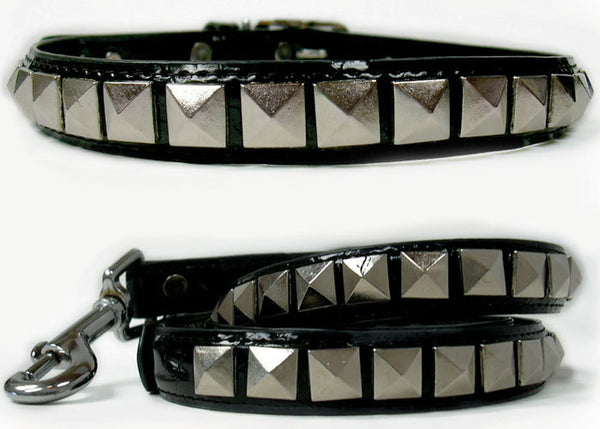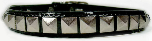 Diva Dog’s Rockstar Dog Collar is trendy, glamorous and oh so cool. In fact it is absolutely perfect for rock star dogs – like yours! The Silver pyramid studs set on genuine patent crocodile print leather is elegant and unique. Your pooch will look like a rock star in Diva Dog’s Rockstar Dog Collar.