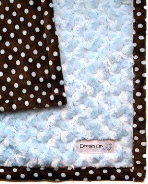Dream On Doggie Blankets are machine washable and handcrafted from the highest quality materials. Choose baby blue or princess pink.