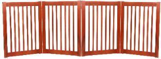 The handcrafted, American made four panel Free Standing Dog Gate is one of our best sellers. This four panel gate is perfect for wide entryways, custom configurations, and unique spaces.