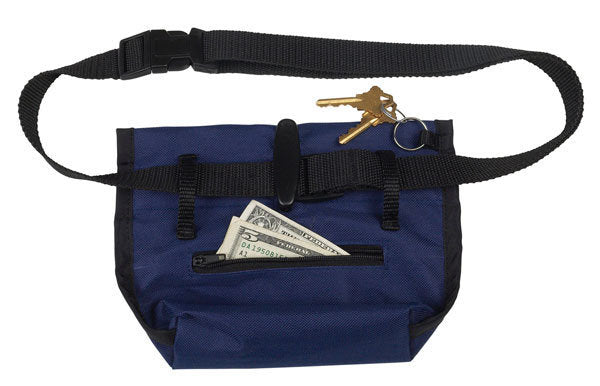 This water-resistant dog treat bag has a key ring and two additional pockets (one zippered, one Velcro®) for storing supplies and personal items.
