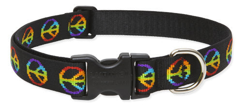 Your pooch will feel groovy in this psychedelic pattern from Lupine®. Featuring rainbow colored peace signs on a black background, Woofstock is perfect for medium and large size dogs. Far out!