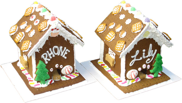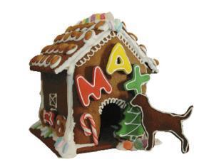 Lavishly adorned with fluffy snow, seasonal treats, nuts, pretzels and candy, this delicious dog house is 100% edible and baked using organic unbleached flour, fresh sweet butter, brown sugar, molasses, farm-fresh cage free organic eggs, lots of ginger and fragrant spices. Yummy for people as well as doggies because only the finest, freshest ingredients are used. Make your holiday extra special this year!