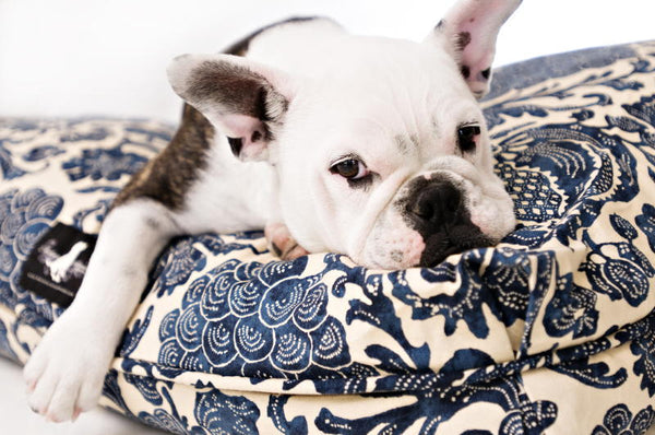 The Catalina Island Blue Dog Bed from Madison Avenue Mutts is a charming dog bed choice.