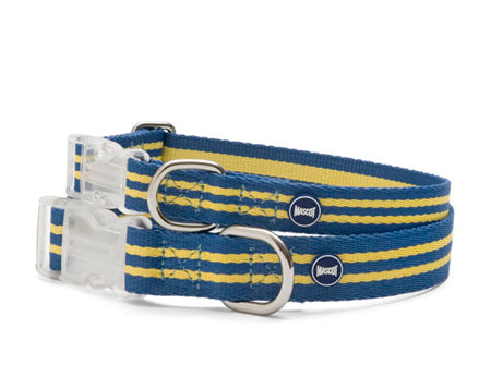 Mascot Striped Eco-Sport Dog Collars are made from 100% recycled materials. Available in Blue & Red, Green & White, Pink & White or Yellow & Blue.