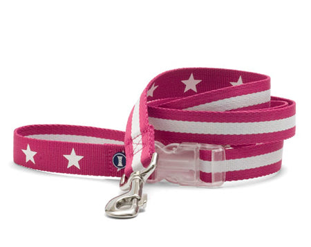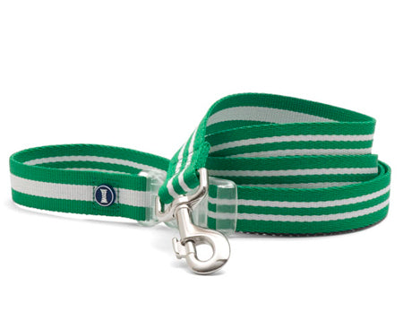 Mascot Striped Eco-Sport leashes are made from 100% recycled materials. Available in Blue & Red, Green & White, Pink & White or Yellow & Blue. Leads is 5 feet long and available in Narrow (3/4" wide) or Wide (1" wide).