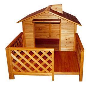 The wood is kiln dried and treated with natural color stains to enhance the appearance and durability of the pet house. Assembly of this designer dog house is a snap – only a screwdriver is needed.