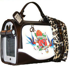 Back for Spring and Summer! Our fabulous Spring Puppy Love Dog Carrier will make you the envy of all your friends. So charming you’ll swoon! Featuring gorgeous detail work, vibrant colors and snazzy brass accents, your little one will know how much she’s loved when you travel together. Approved by most major airlines for in cabin travel, this incredible carrier works for travel, or just hanging out around town. Made from easy to clean pleather (no animals were harmed in the making of this carrier).