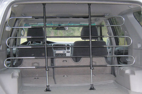 This smart safety barrier keeps your pet safely in back, away from the steering wheel. Fits most SUVS, station wagons and minivans.
