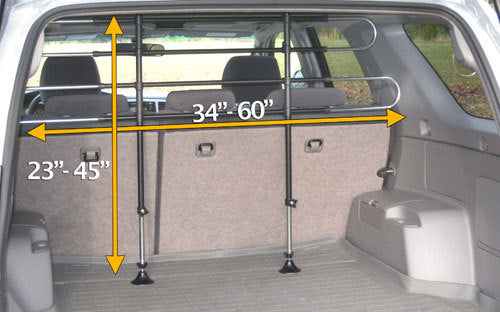 Adjust the Pet Partition from 39" to 66" in width and 32" to 42’ in height. Keeps cargo securely in place, and your pet safe in back.