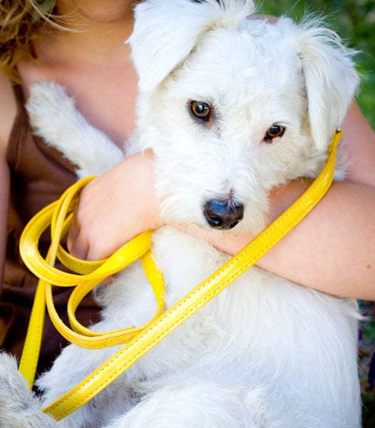 Made of dog-resistant polyurethane and backed with full-grain leather, these gorgeous collars and leashes are finished off perfectly with shiny silver-finished hardware.