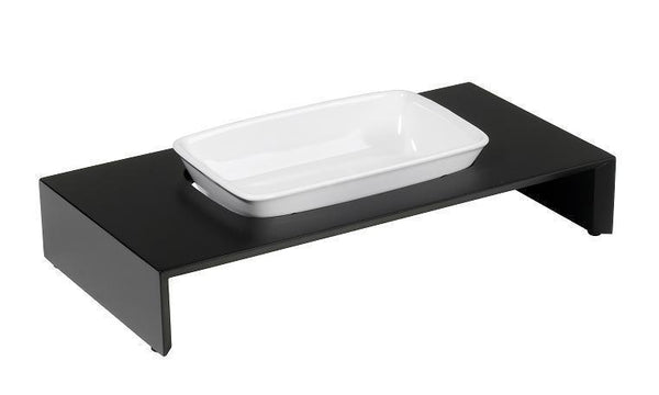 Pet dining has never been so refined. The simple, clean lines of the Siam Raised Pet Feeder create a contemporary, refined look. Available in two designer wood veneers, Mocha or Black with classic white, heavy-weight ceramic bowls (lead-free and dishwasher safe). Wood veneer stand is water repellent and easily wipes clean. All stands have anti-slip cushioned feet.