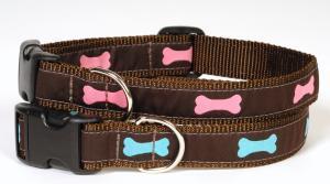 Featuring adorable baby blue bones on a rich chocolate background along with quick-release buckle and nickel hardware. Fully adjustable. Matching leash sold separately.