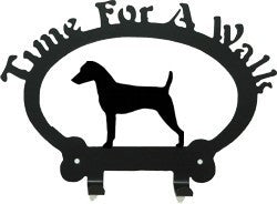 The Sweeney Ridge Jack Russell Dog Leash Hook features a handsome silhouette of your favorite breed, along with the saying Time For A Walk.