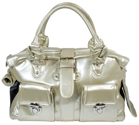 An “oh-so chic” take on the the doggy carrier, this shiny “croc” bag is sure to gather up your pup just as easily as it gathers up compliment after compliment.