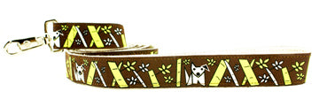 The Bamboo Pooch Collection features an adorable pup amongst a lime green bamboo forest and chocolate brown background. Leashes are 5 feet long and available in Narrow (3/4") or Wide (1"). Matching leash sold separately.