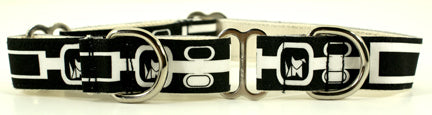 Also called a limited-slip collar, the Martingale collar is very effective on dogs that back out of regular collars. Martingale collars are self adjusting so your dog cannot slip out of it. A good choice for Greyhounds and other dogs with small heads and large necks. This collar should never be left on unattended dogs.