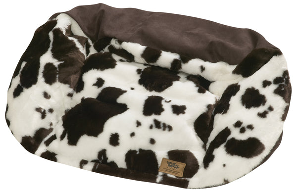 Made with chic cow print design for cozy warmth and faux suede stylish strength, this bed gives snuggling a whole new meaning! Thick denier 100% recycled IntelliLoft poly-fill gives added volume, allowing maximum comfort without lumping or condensing.
